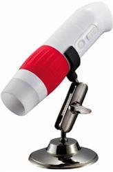 Digital zoom microscope offers 10x-50x variable zoom and 200x micro magnification for viewing prepared slides. Built-in focus control. 8-LED lights built in ring formation with 2-step brightness. Built-in 1/3" CMOS 1.3 mega pixel camera. Includes metal stand and Motic Toolbox Software. 1 Year Warranty.